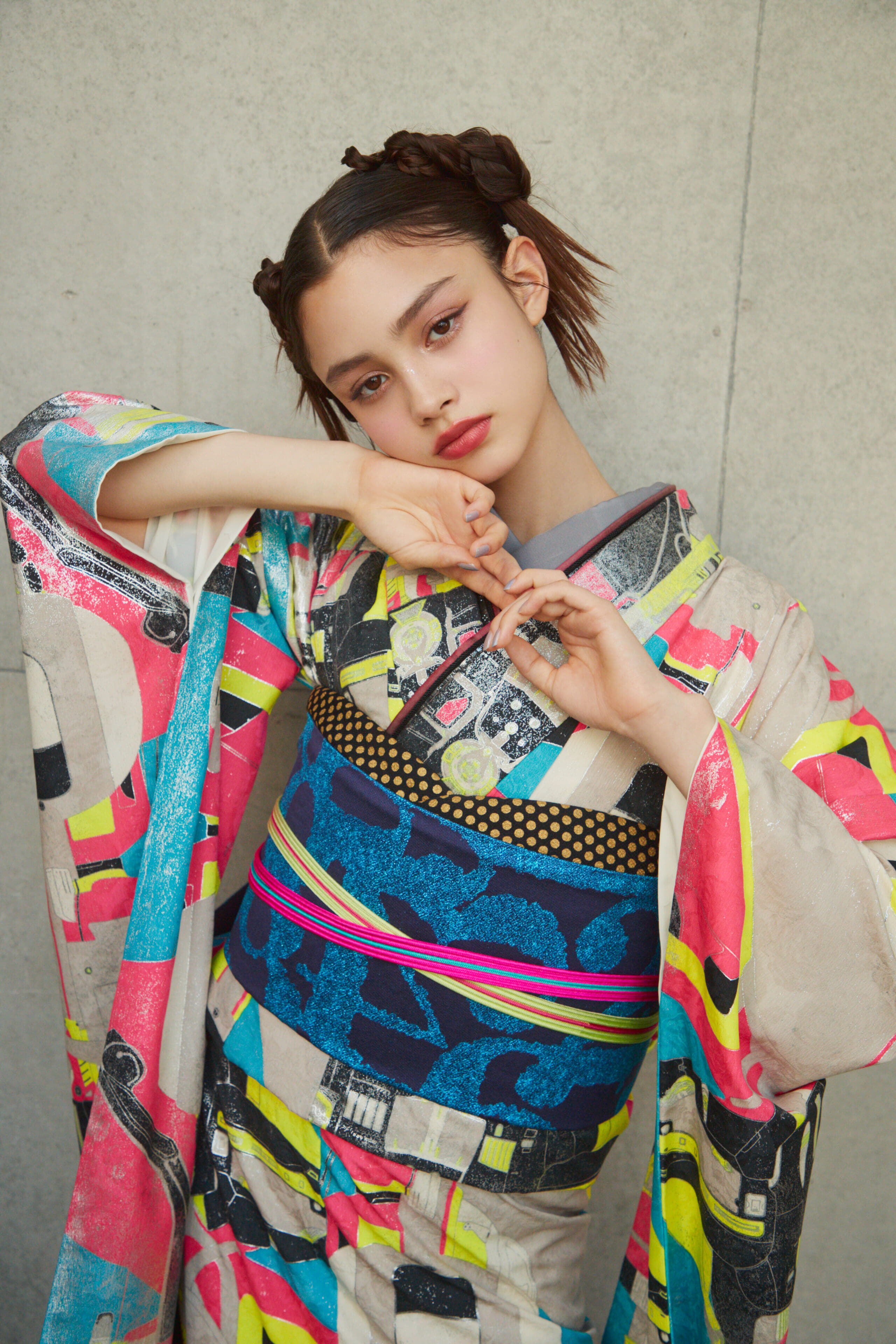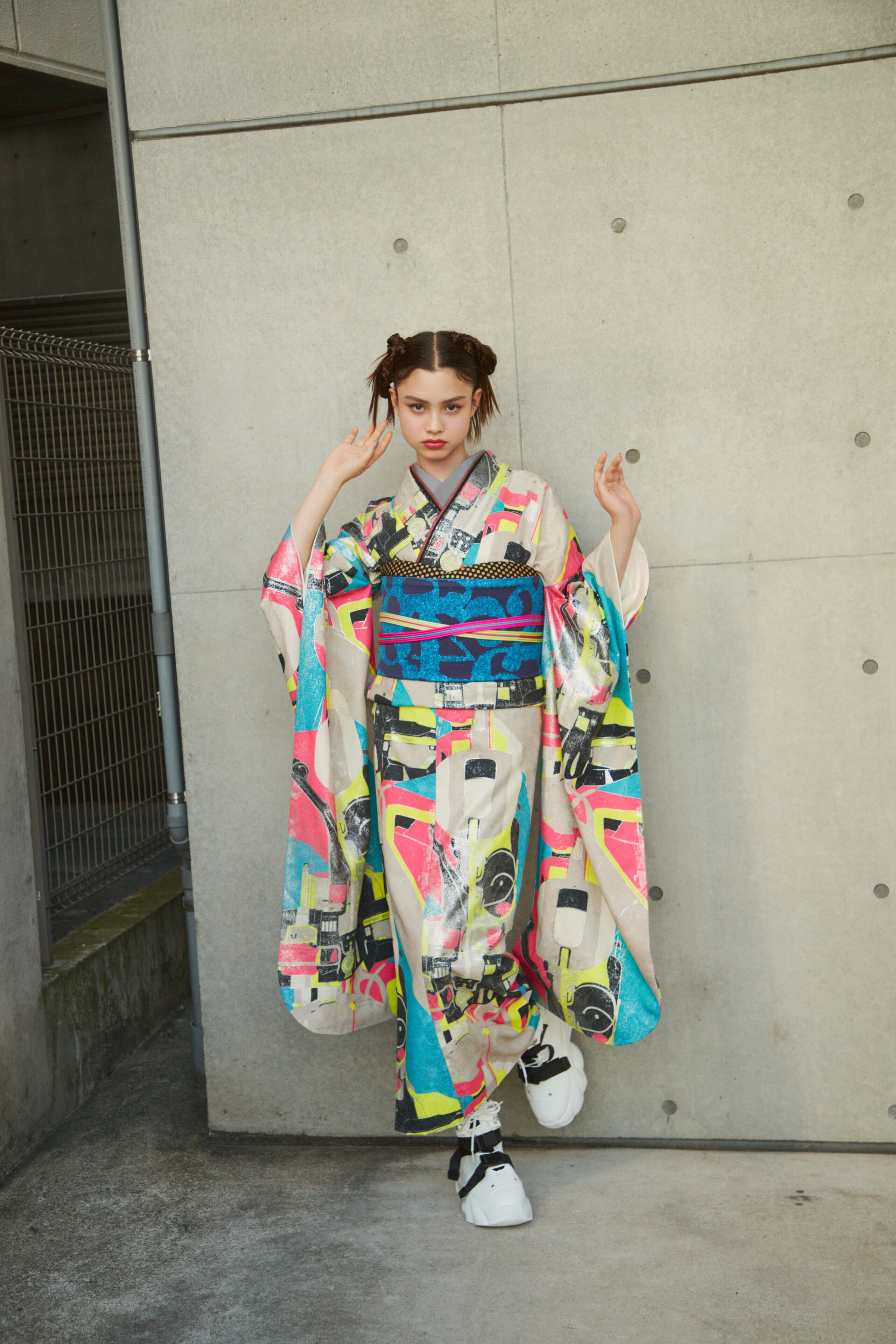 カラフルでポップなデザインが目を引く現代的な振袖です。個性的でありながらお洒落な着こなしを叶えます。