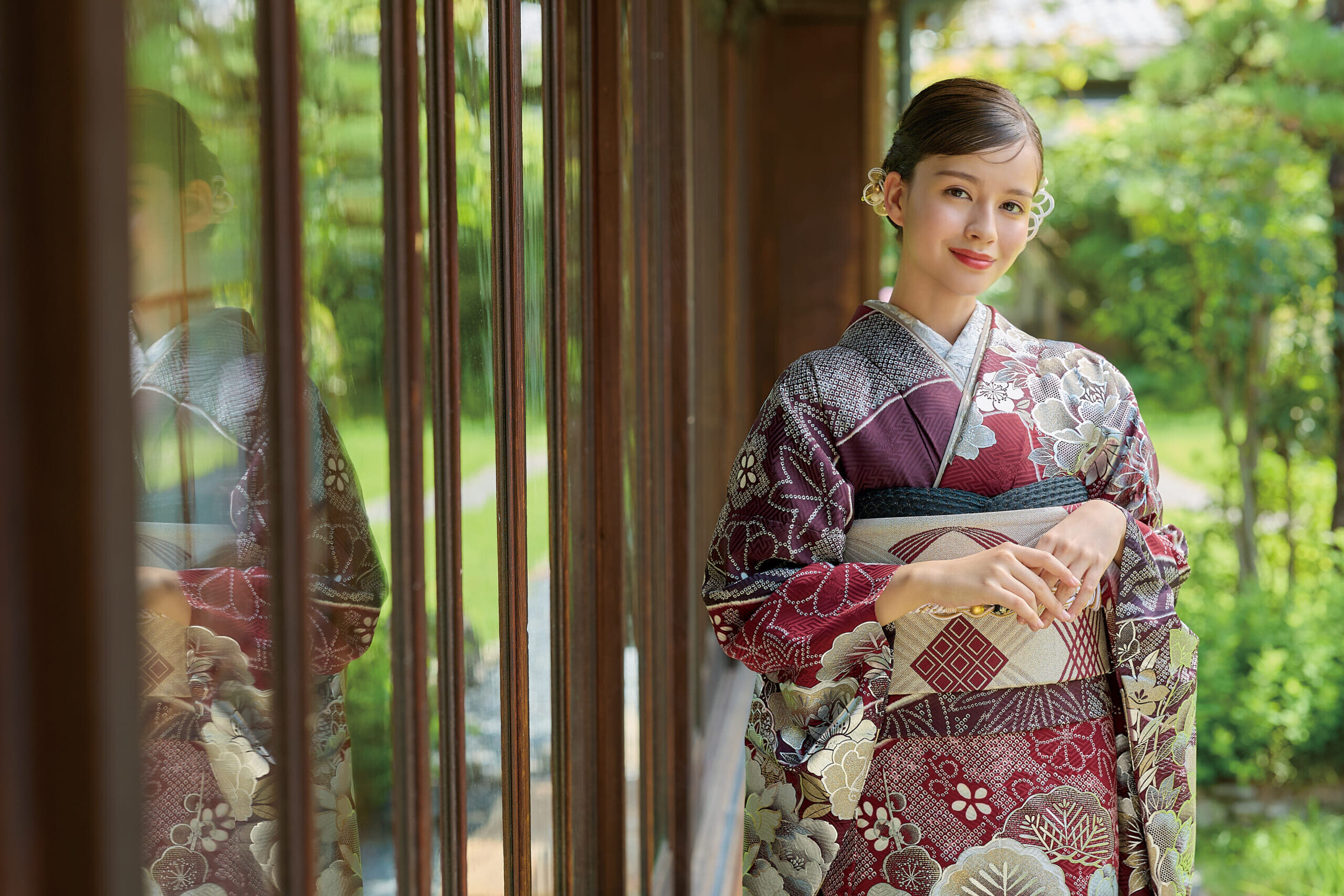 明るく爽やかな色合いに華やかな柄を合わせた振袖です。若々しい印象を与えます。