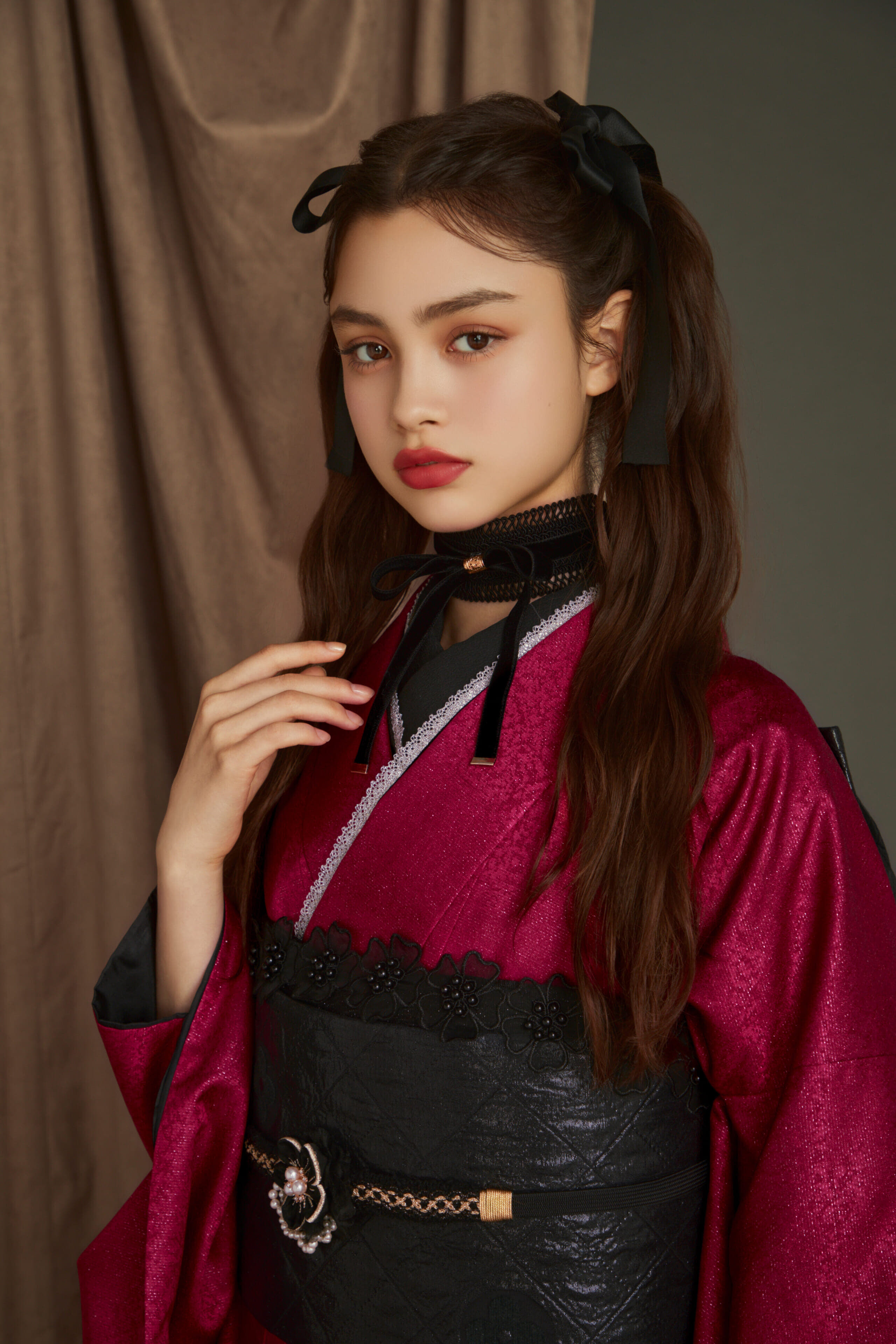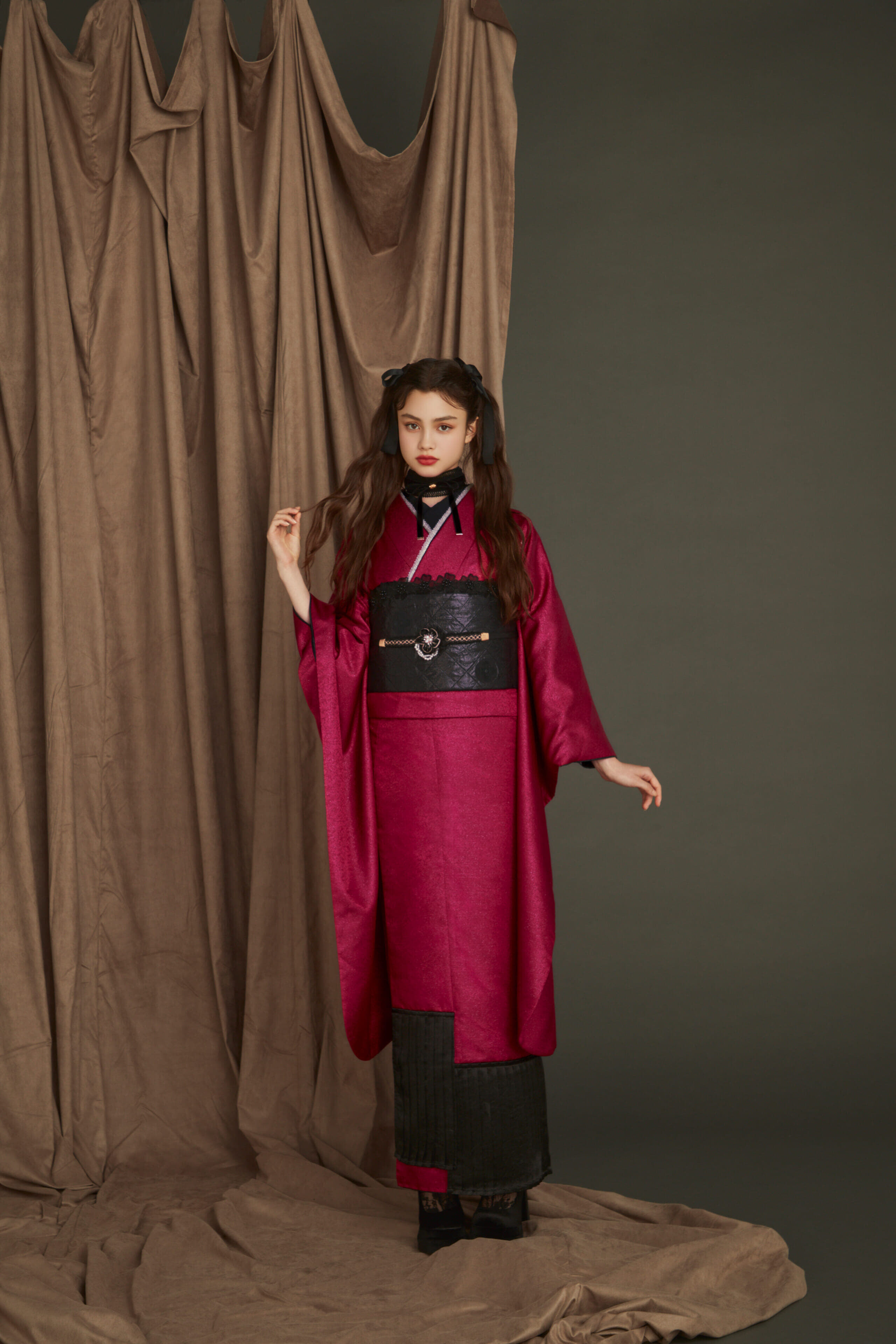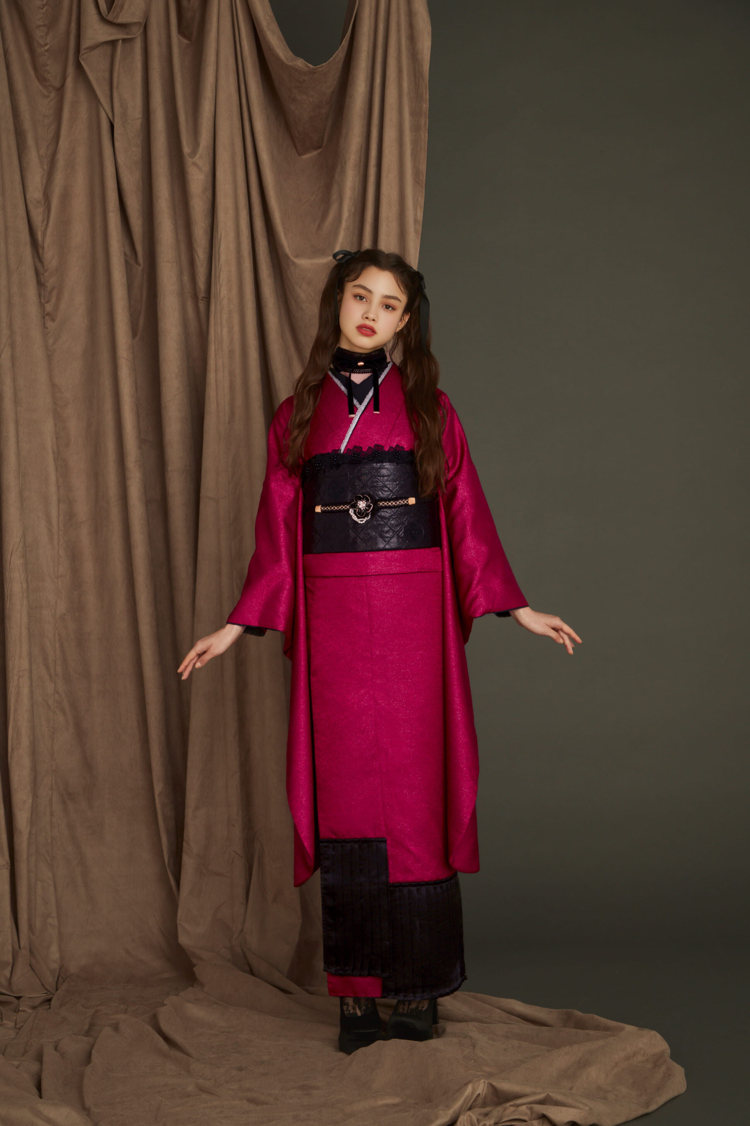 鮮やかなピンク系の色合いが若々しい印象を与える振袖です。可愛らしさと大人っぽさを兼ね備えた一着です。